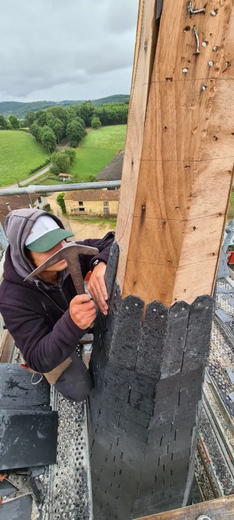 Intervenir sur un clocher comme celui de Larcan demande une maîtrise complète. Ce type de chantier, visible depuis tout le village, nécessite un savoir-faire précis afin de garantir la sécurité, l’étanchéité et la longévité de l’ouvrage.